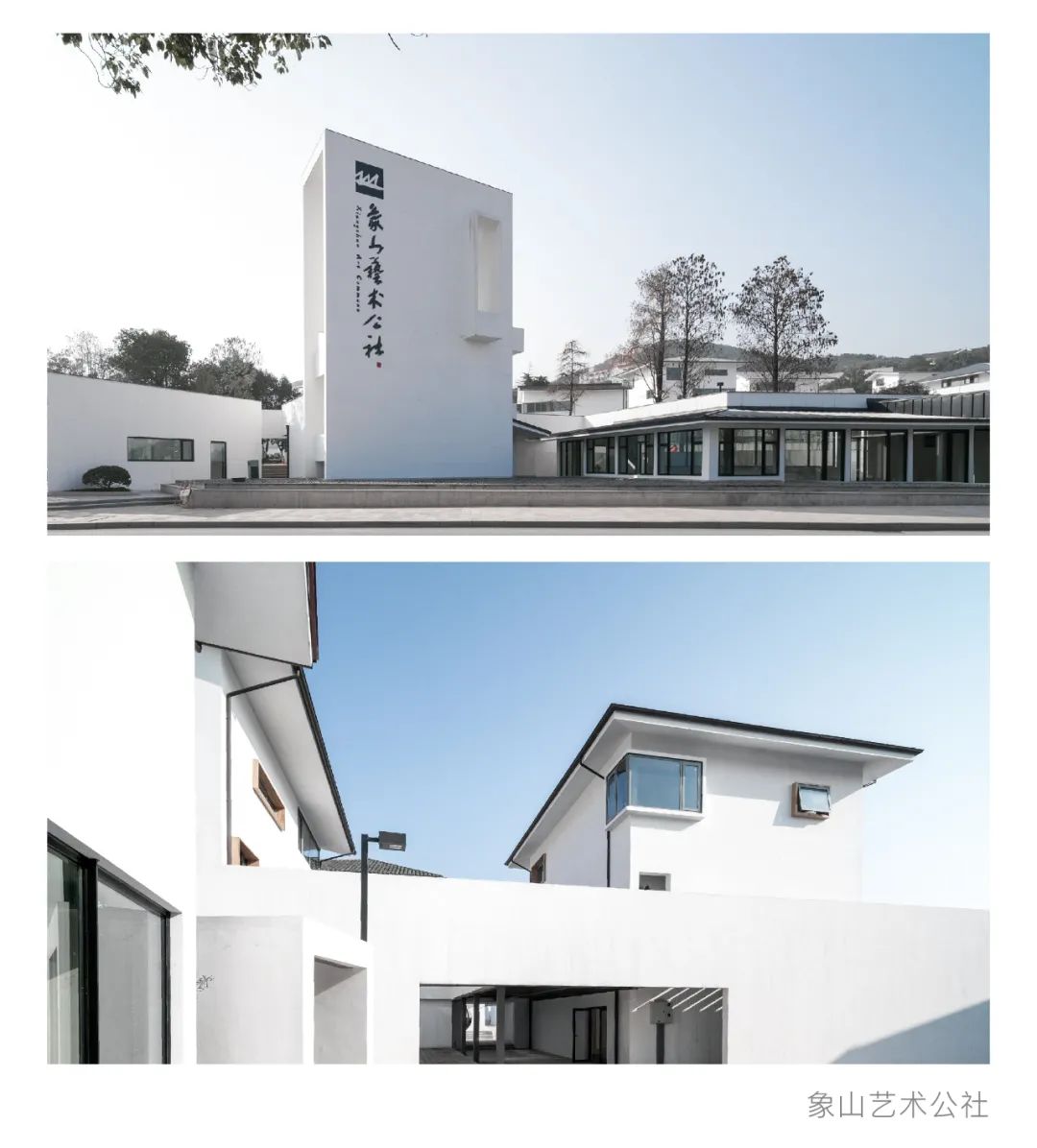 整個建筑以極簡流暢的線條勾勒出多維、立體的線性幾何構(gòu)造,在一軸兩岸、山水相依的天賦自然環(huán)境下投射出時間與藝術(shù)的光影,帶著煙暖雨收的景致雅韻,在江南水鄉(xiāng)的文缊煙嵐里自由生長,與時代和鳴,伴歲月悠長。