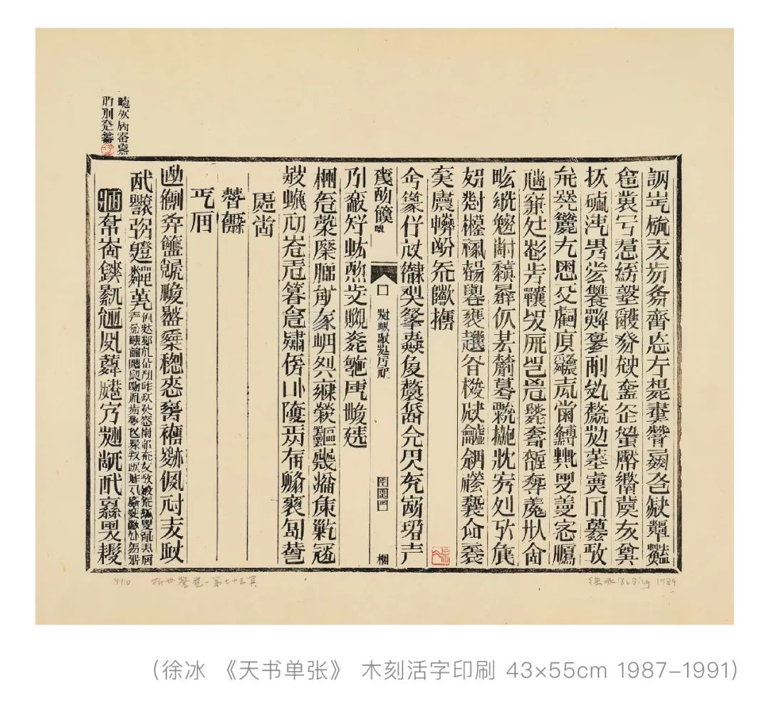 《天書》,藝術(shù)家徐冰的成名作。一部以漢字為原型創(chuàng)作,包含了4000多個字的創(chuàng)意作品,有字的形體卻沒有字的意思,讀不出任何內(nèi)容,這些“不存在”的文字,表達(dá)了徐冰對現(xiàn)存文字的遺憾。