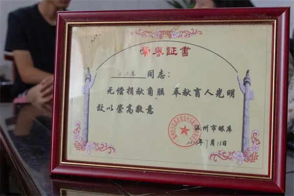 丨應(yīng)超迅爸爸捐贈眼角膜的榮譽證書