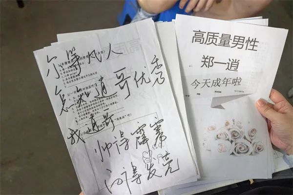 今年3月17日,鄭一逍18歲生日這一天,全班同學(xué)每人給他畫了一幅“逍”像畫,附上祝福的話語,厚厚的40頁紙匯成了一本特殊的生日冊。有人寫道:“爾等凡人,怎知道我逍哥優(yōu)秀!”“首考失利,但相信你的實力,一定會在6月的考場綻放。”還有人把他畫成像綠巨人一樣的肌肉男。“真的超級感動!”鄭一逍說,翻看冊子的時候,能感到沉甸甸的期待與鼓勵。