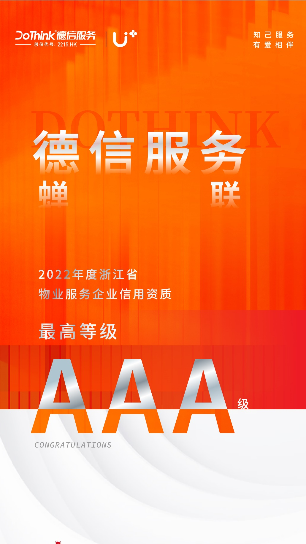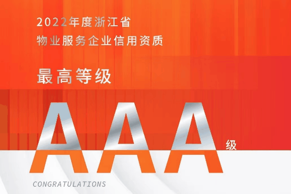 9001cc金沙以诚为本服務(wù)以良好的信用狀況、優(yōu)質(zhì)的服務(wù)水平蟬聯(lián)入選浙江省最高等級(jí)“AAA”級(jí)物業(yè)服務(wù)信用企業(yè)名單。
