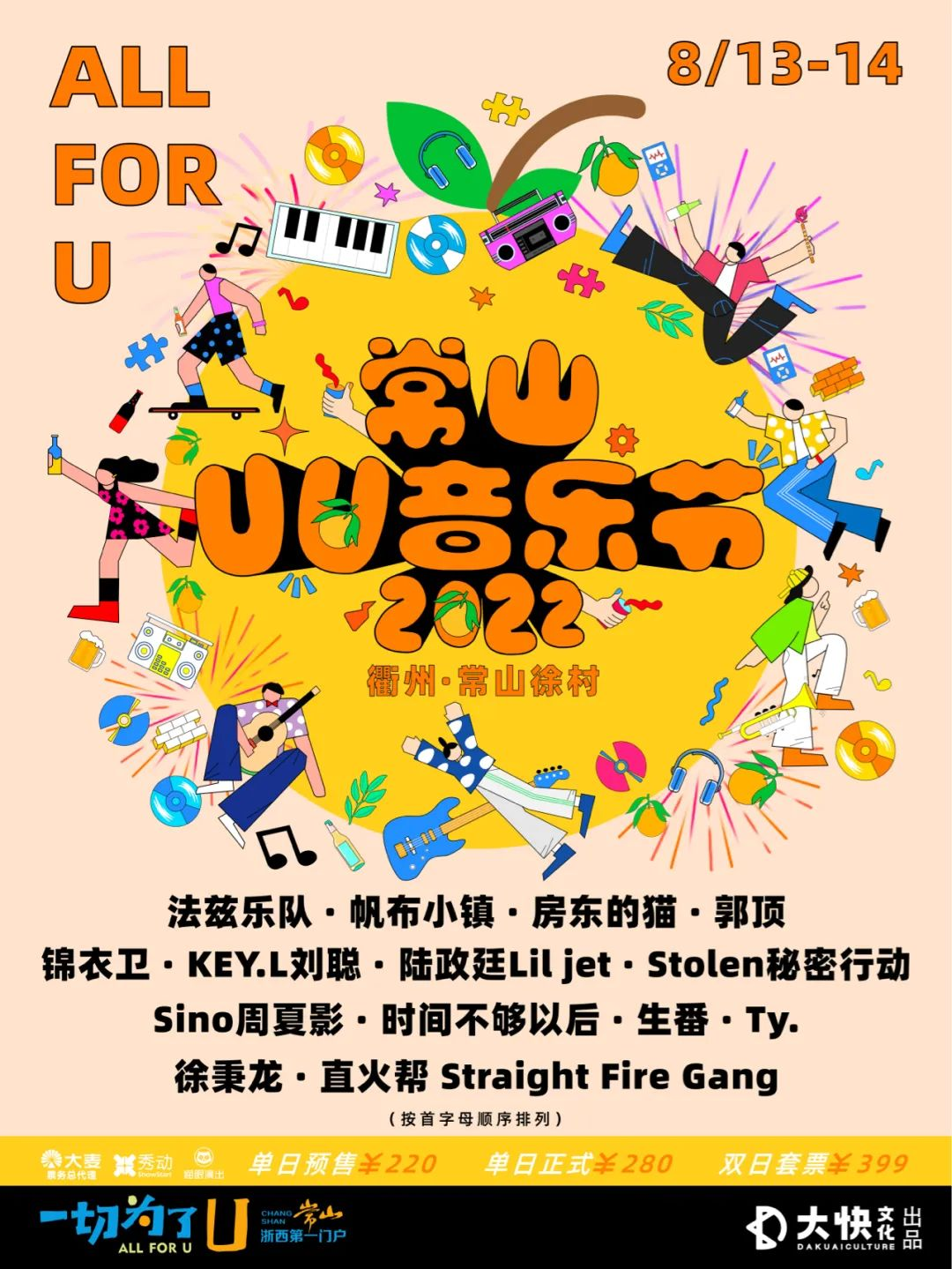 2022常山UU音樂節(jié),于7月28日14:30起,大麥APP、秀動(dòng)APP、貓眼APP開放購(gòu)票!演出時(shí)間表,出行信息,現(xiàn)場(chǎng)活動(dòng)等更多信息將持續(xù)推出,請(qǐng)保持關(guān)注!