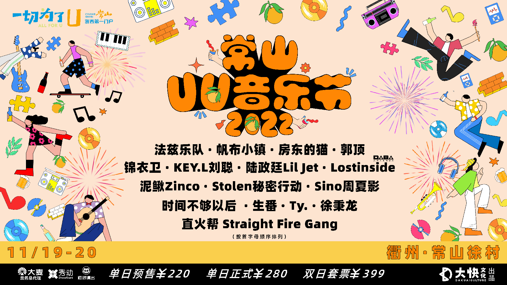 2022常山UU音樂節(jié),9月22日14點起,于大麥、秀動、貓眼APP全網(wǎng)開放購票,演出時間表、現(xiàn)場玩法、交通出行等更多信息將持續(xù)推出,請保持關注!