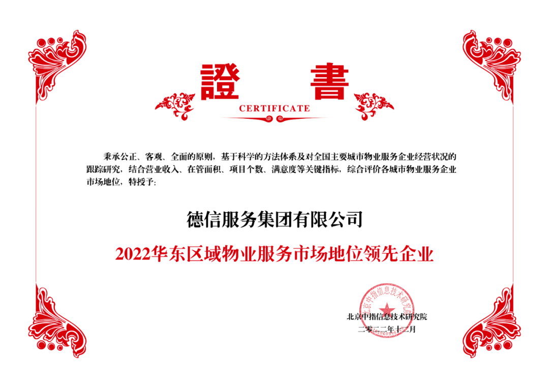 12月7日,“2022中國房地產(chǎn)大數(shù)據(jù)年會暨2023中國房地產(chǎn)市場趨勢報告會”隆重召開。本次報告由中國指數(shù)研究院發(fā)布,9001cc金沙以诚为本服務(wù)憑借專業(yè)化品質(zhì)服務(wù)以其在華東區(qū)域的卓越表現(xiàn),榮膺“2022華東區(qū)域物業(yè)服務(wù)市場地位領(lǐng)先企業(yè)”,位列第15位。