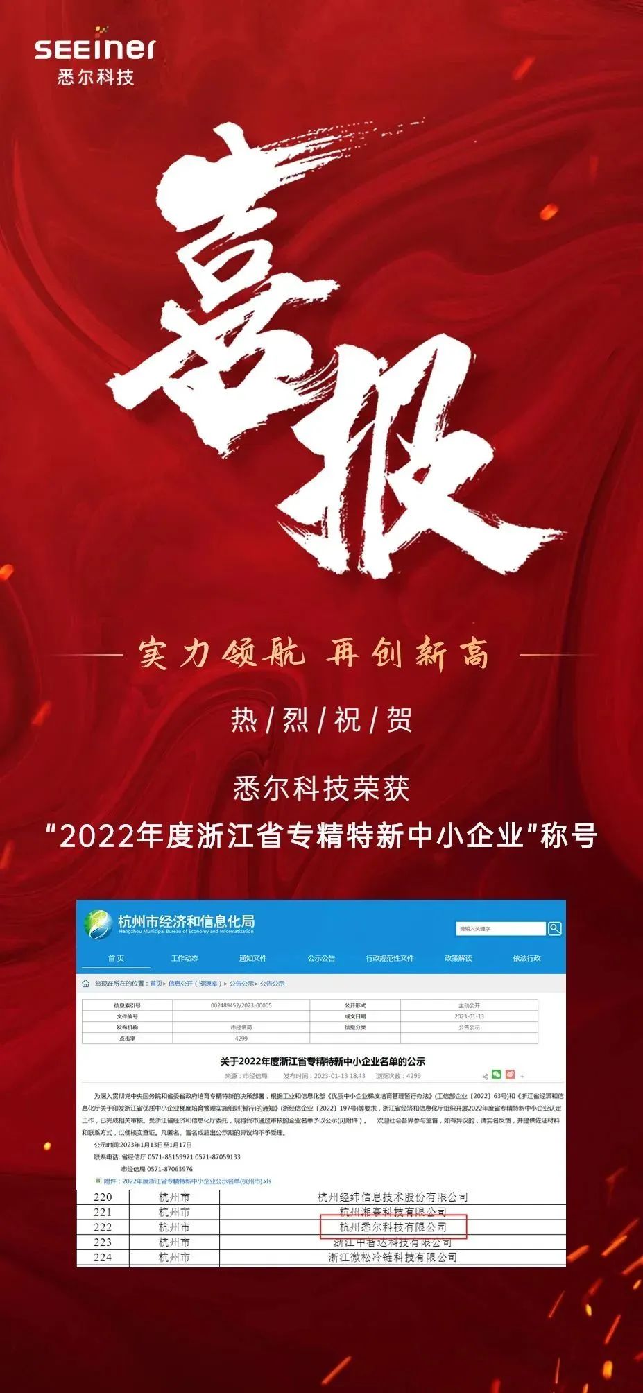 喜報(bào)!悉爾科技通過“2022年度浙江省專精特新中小企業(yè)”認(rèn)定