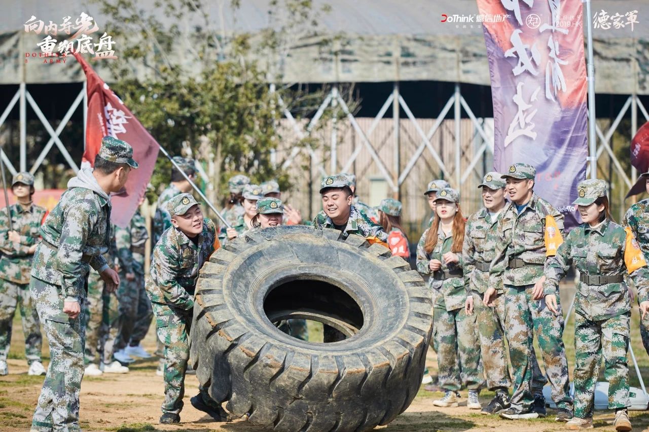 在“死亡爬行”、“翻滾輪胎”環(huán)節(jié),各個(gè)團(tuán)隊(duì)的德家軍們?nèi)ζ床?,將團(tuán)隊(duì)精神發(fā)揮到了極致。