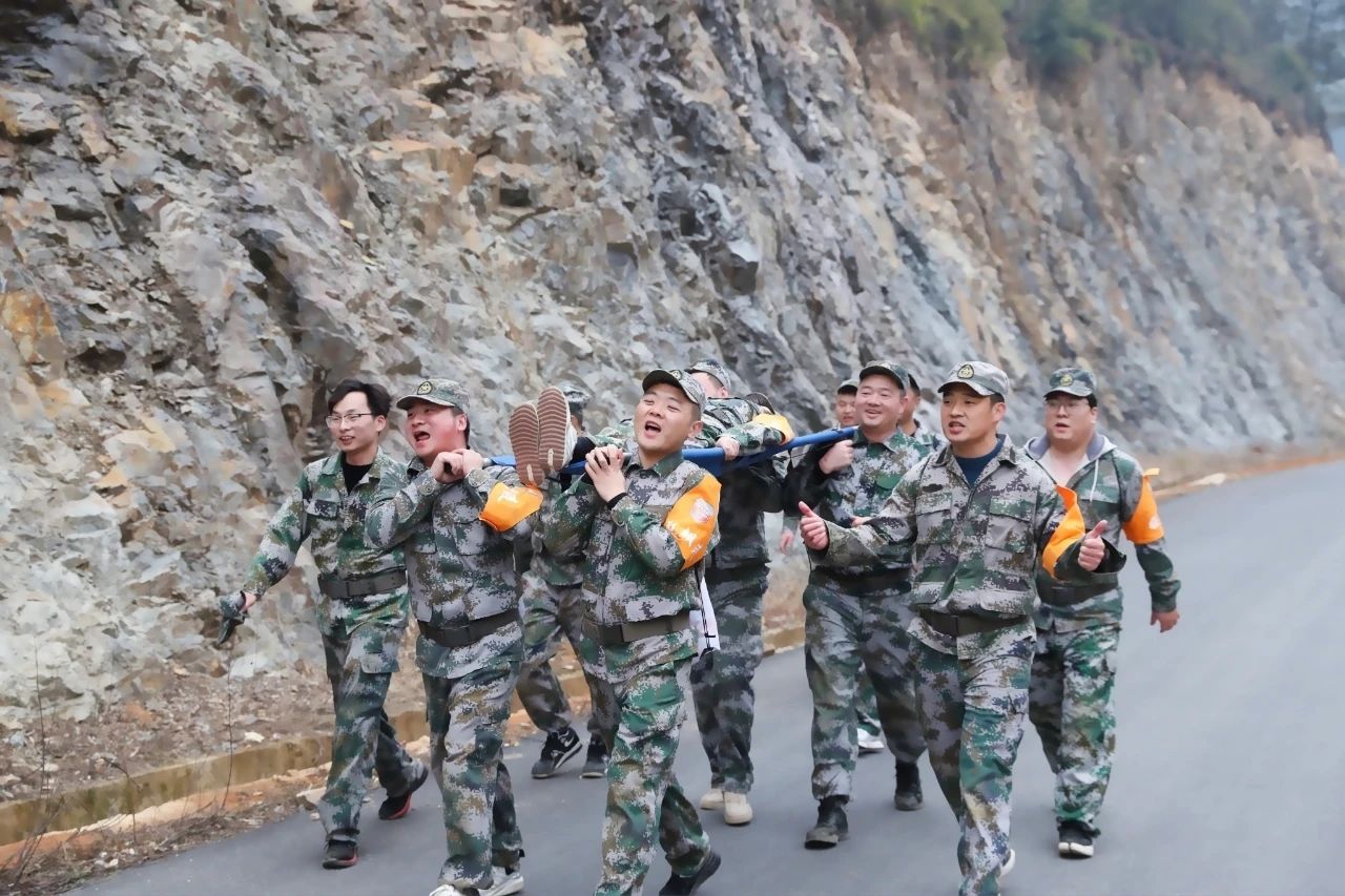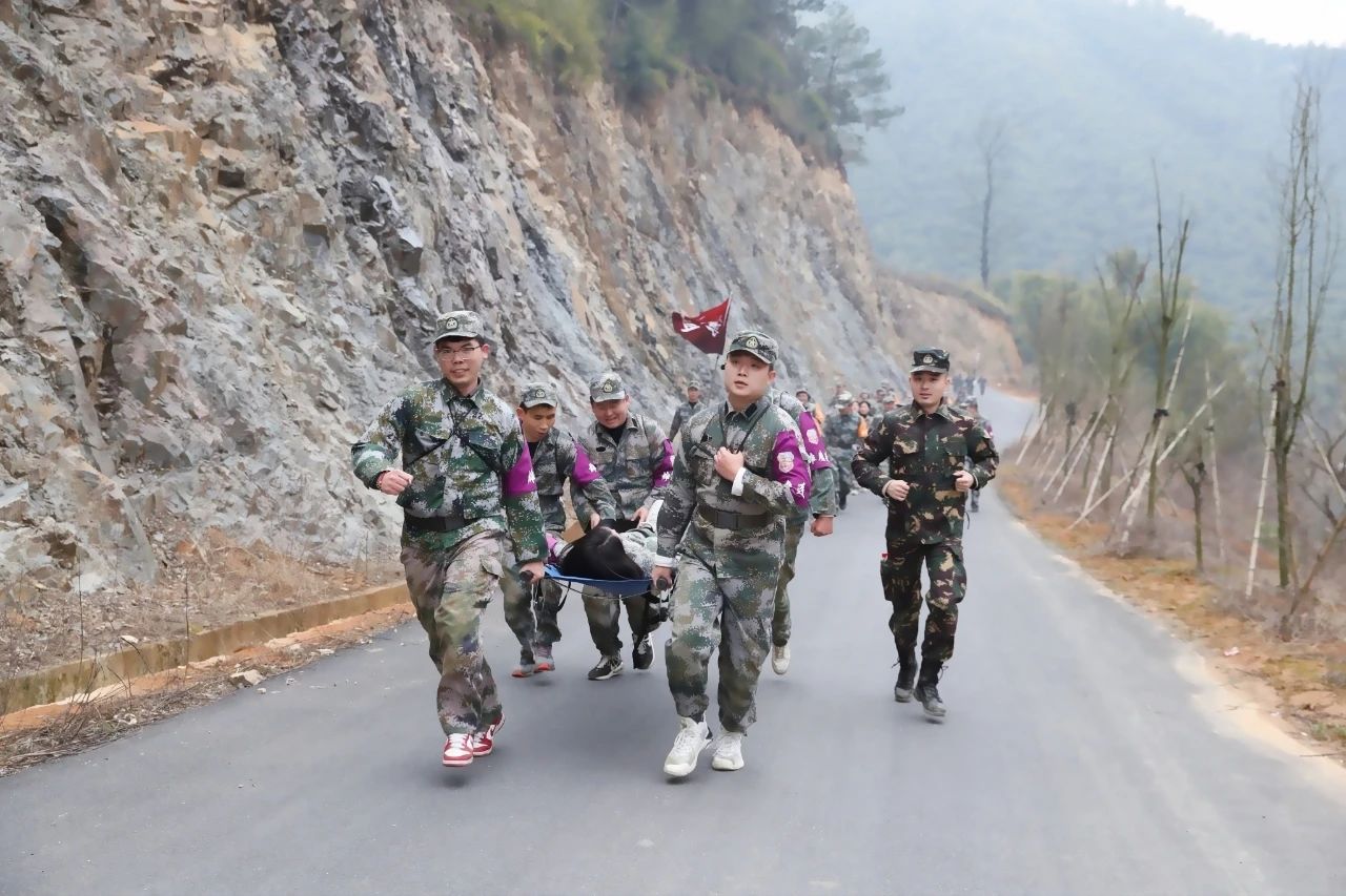 徒步6公里競(jìng)走拉練,在過程中需要完成“擔(dān)架抬行”的任務(wù),需團(tuán)隊(duì)全員到齊才算完成任務(wù),充分發(fā)揮了德家軍“困必奮力相救”的德家軍精神。