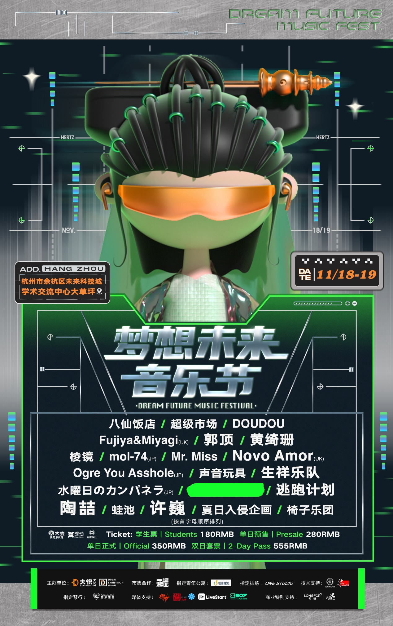 我們懷揣著夢(mèng)想并踏上新的旅程,11月18日-19日,陶喆、許巍、黃綺珊、郭頂、生祥、超級(jí)市場(chǎng)、逃跑計(jì)劃、聲音玩具、Fujiya & Miyagi、Novo Amor、Mr. Miss等共計(jì)22組音樂人與你一起,相聚杭州市余杭區(qū)未來科技城學(xué)術(shù)交流中心大草坪,一起共向未來!